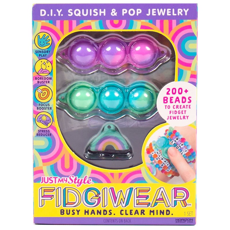 - FIDGET TOYS MEET STYLE: This bracelet-making set puts a one-of-a-kind sensory spin on traditional DIY jewelry kits — it comes with never-ending poppable bands and super-soft squishy charms you can use to fidget and feel good!