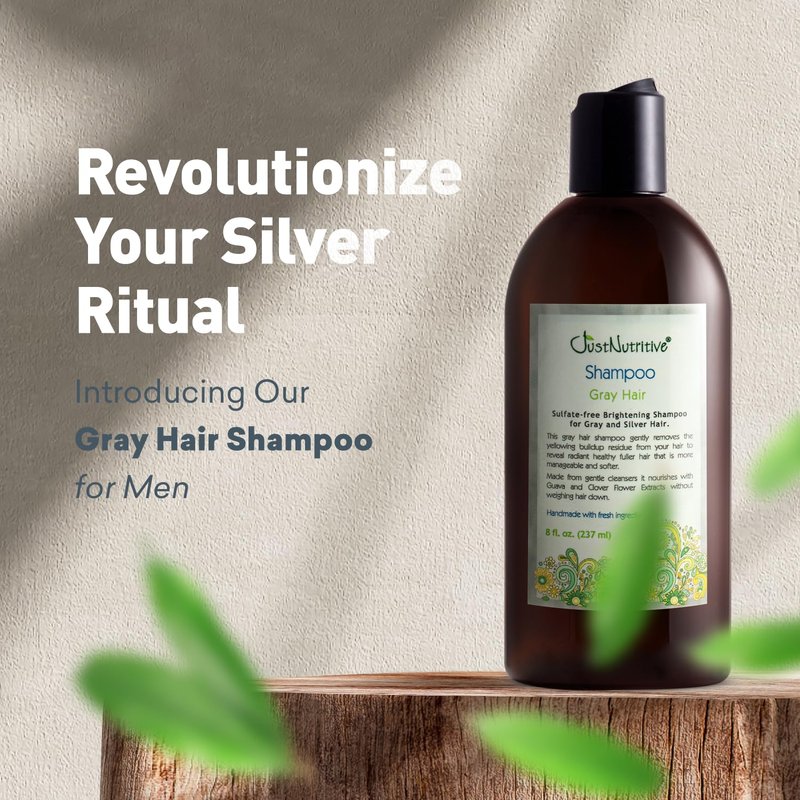 Just Nutritive Men's Gray Hair Shampoo | Remove Yellowing or Brassy Tones with No Sulfates | Natural Ingredients | Gray Hair Treatment | 8 oz.