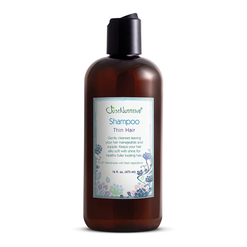 This shampoo quickly fortifies hair to add body and fullness to thin, fine or thinning hair. This Thin Hair Shampoo is enriched with Castor and Avocado that help reduce breakage and thinning for hair that feels stronger and thicker. Rich plant nutrients help fortify hair from root to end for thicker hair. Cleanses and moisturizes without leaving residue to keep the hair and scalp fresh, clean and healthy looking.This shampoo is formulated for all hair types. Can be used on both men and women. It is gentle enough for daily use. Anti-fade, color safe formula keeps hair color longer without chlorides or sulfates. No Artificial Fragrance, Color, Parabens or Sulfates. At Just Nutritive, we use no animal ingredients or do any animal testing. We assure you that every bottle is handmade with love in the USA and made of Earth's purest ingredients. Together, let's nourish with nature.