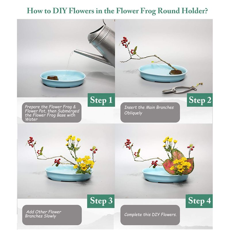- ♣Kenzan Flower Frogs ---- JUSTDOLIFE Ikebana Flower Pin Holder is built with a heavy metal floral frog base with spiky flower pins to hold flower stems in place, includes rubber gasket which fits around the base to prevent scratches or damage to flower vase.