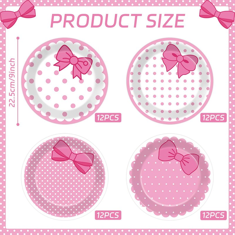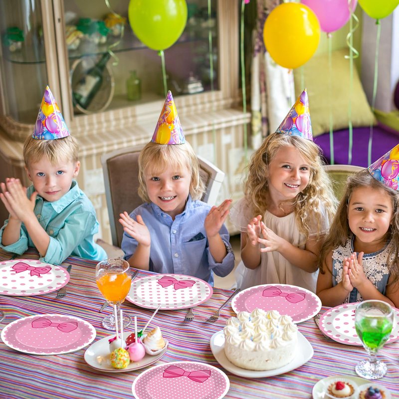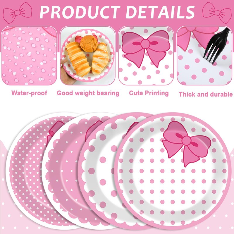 - Pink cat design: These adorable pink cat design features pink bows, pink and white polka dot patterns on these pink cat paper plates. Create a cute atmosphere with our cute cat birthday plates and napkins, ideal for any pink cat lover's celebration.
