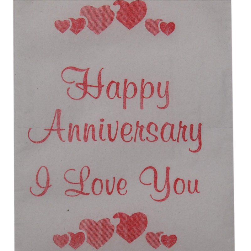 - IMAGE IS PRINTED USING SOY BASED INK, on the full roll, not just the top sheet and reads "Happy Anniversary, I Love You"