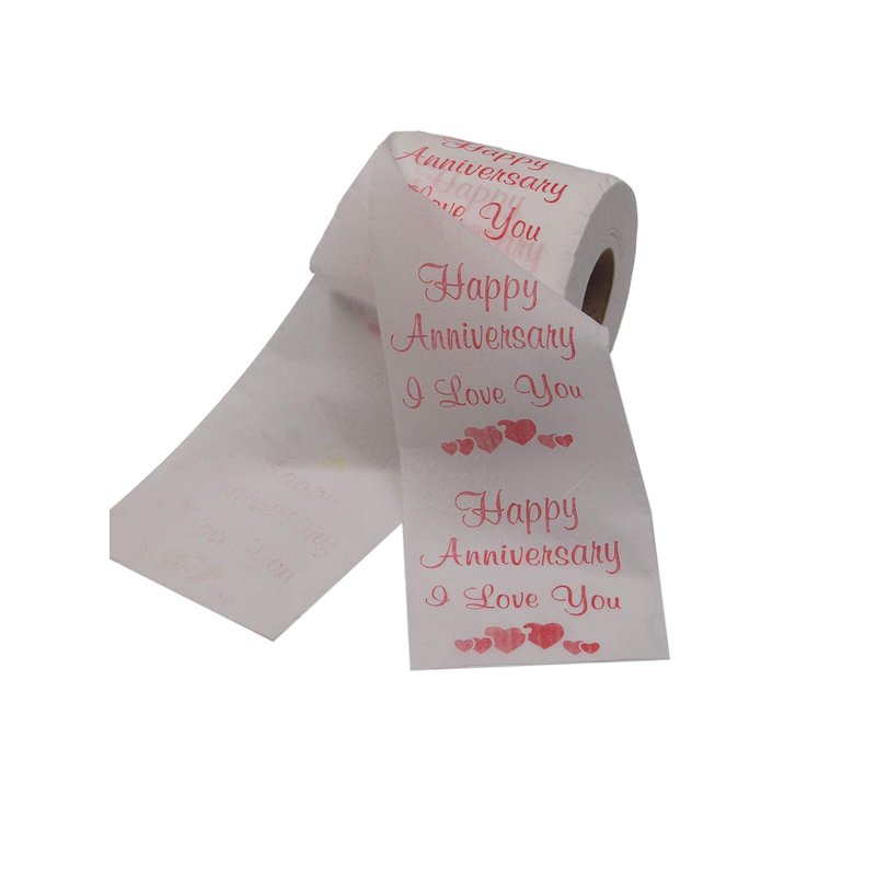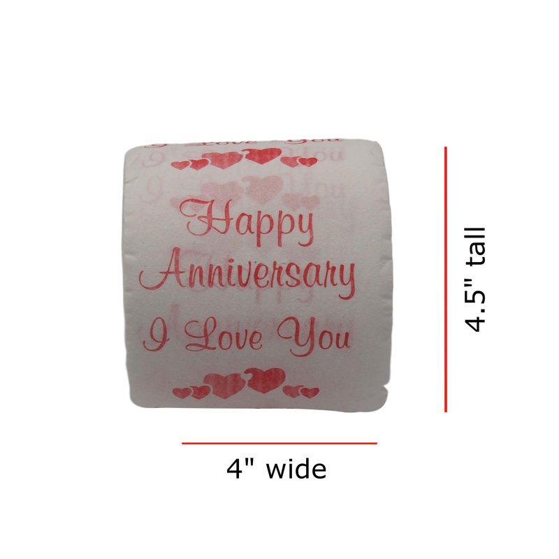 JustPaperRoses Happy Anniversary, Printed Toilet Paper Gag Gift, Funny Novelty Wedding or Dating Anniversary Present for Him or Her