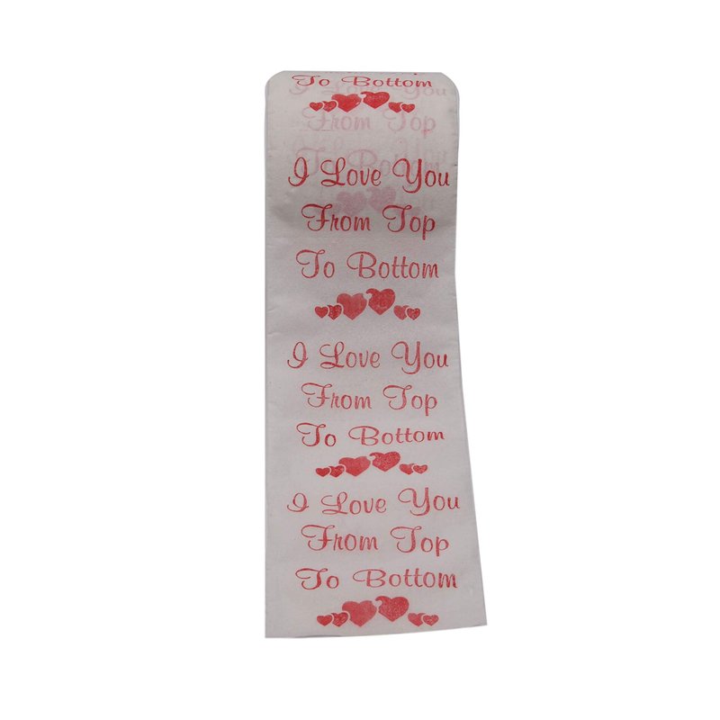 - IMAGE IS PRINTED USING SOY BASED INK, on the full roll, not just the top sheet and reads "I Love You From Top to Bottom"