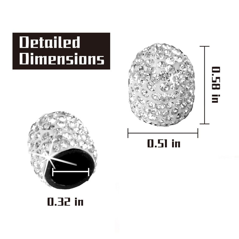 - The tire caps are made of Sparkling Rhinestones material, beautiful appearance with shiny diamond, give your car a unique luxury look and make it a great car accessory gift for women.