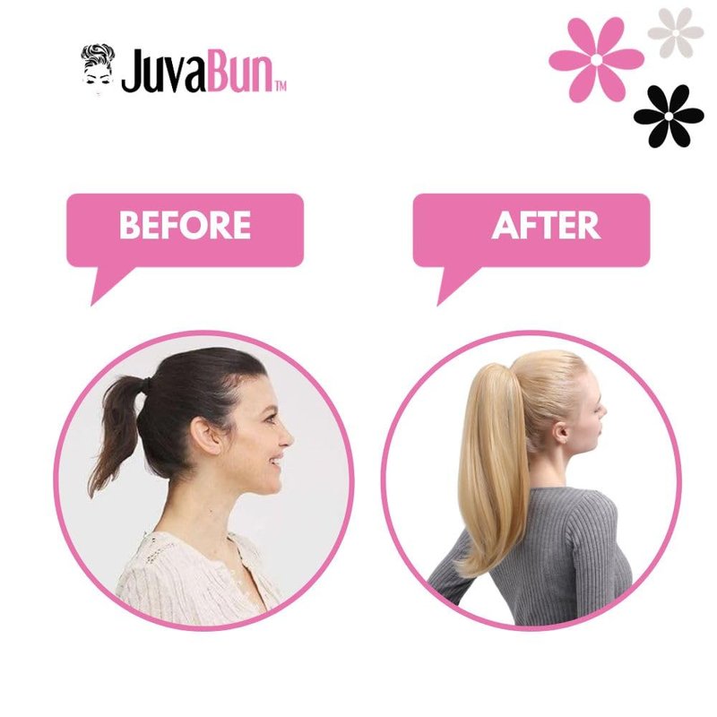 - ✔️ VOLUME ELEGANCE: JUVABUN- Get instant, all-day volume and natural-looking hair with JuvaBun Ponytail. our high-quality clip-ins for hair extensions, designed to seamlessly blend with your natural hair for a flawless finish. Our ponytail claw clip provides a secure and comfortable hold, ensuring your wavy ponytail extension stays in place throughout the day.