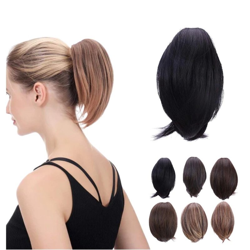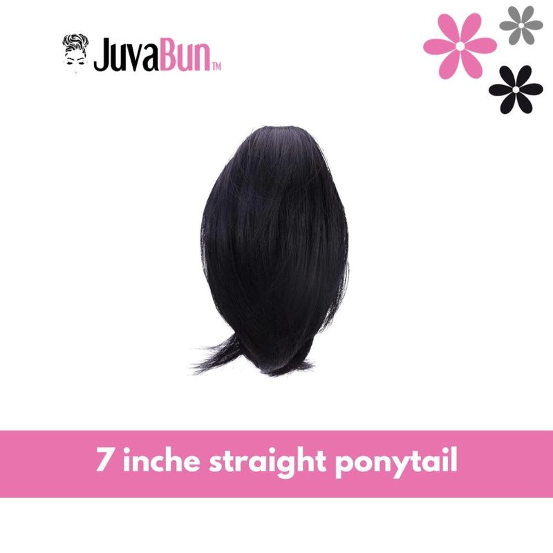 JUVABUN 7" Straight Claw Clip In Ponytail Hair Extensions - Black| Ponytail Extension Human Hair | Hair Extensions for Women & Men | Washable, Realistic And Synthetic | Black