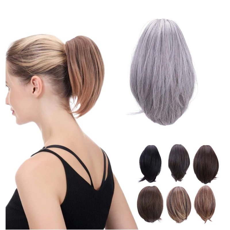Juvabun 7" Straight Claw Clip In Ponytail Hair Extensions - Light Gray | Ponytail Extension Human Hair | Hair Extensions for Women & Men | Washable, Realistic And Synthetic | Light Gray