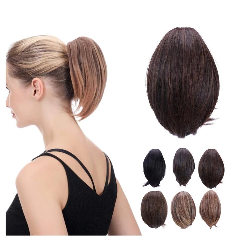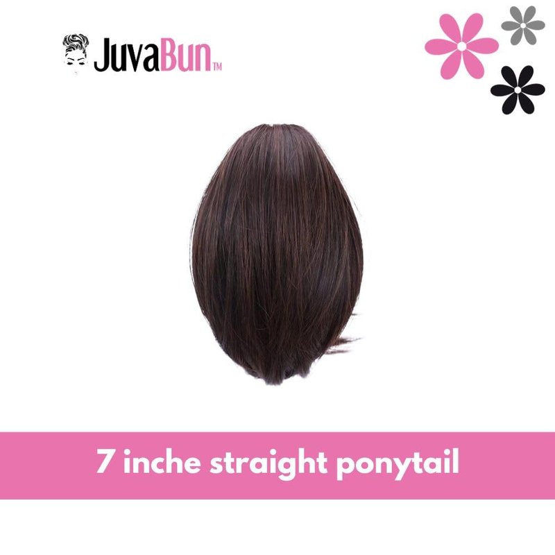 JUVABUN 7" Straight Claw Clip In Ponytail Hair Extensions - Medium Brown| Ponytail Extension Human Hair | Hair Extensions for Women & Men | Washable, Realistic And Synthetic |Medium Brown