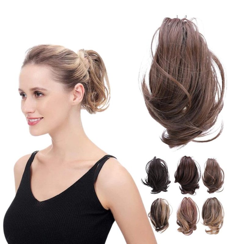 JUVABUN Claw Clip Wavy Ponytail Extension 7" -Light Brown | Hair Extension Clips | Ponytail Extension Human Hair | Wavy Hair Extensions | Washable Realistic And Synthetic |Light Brown