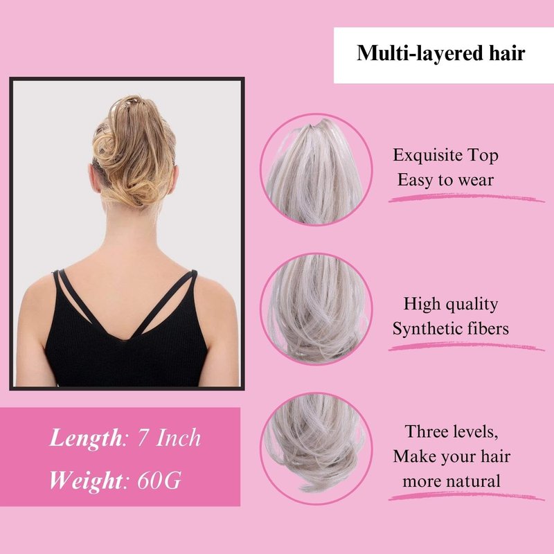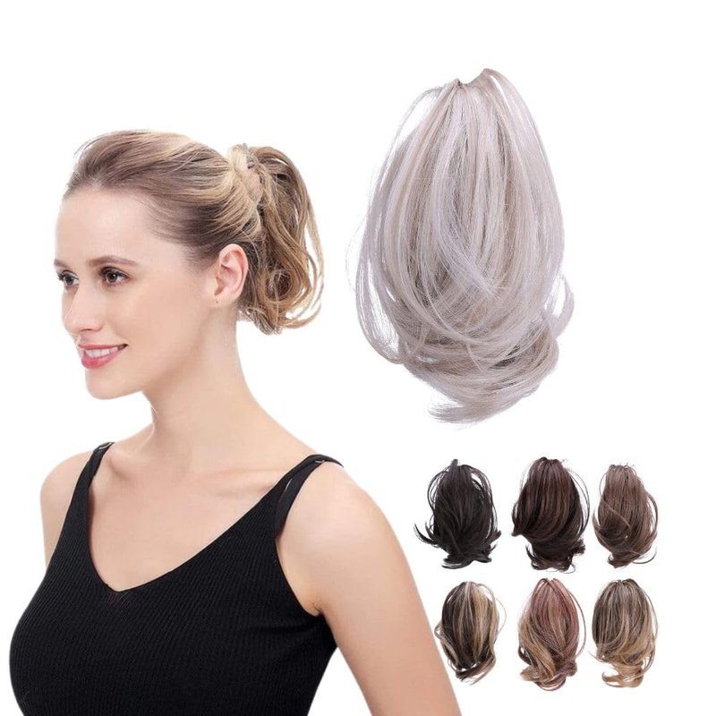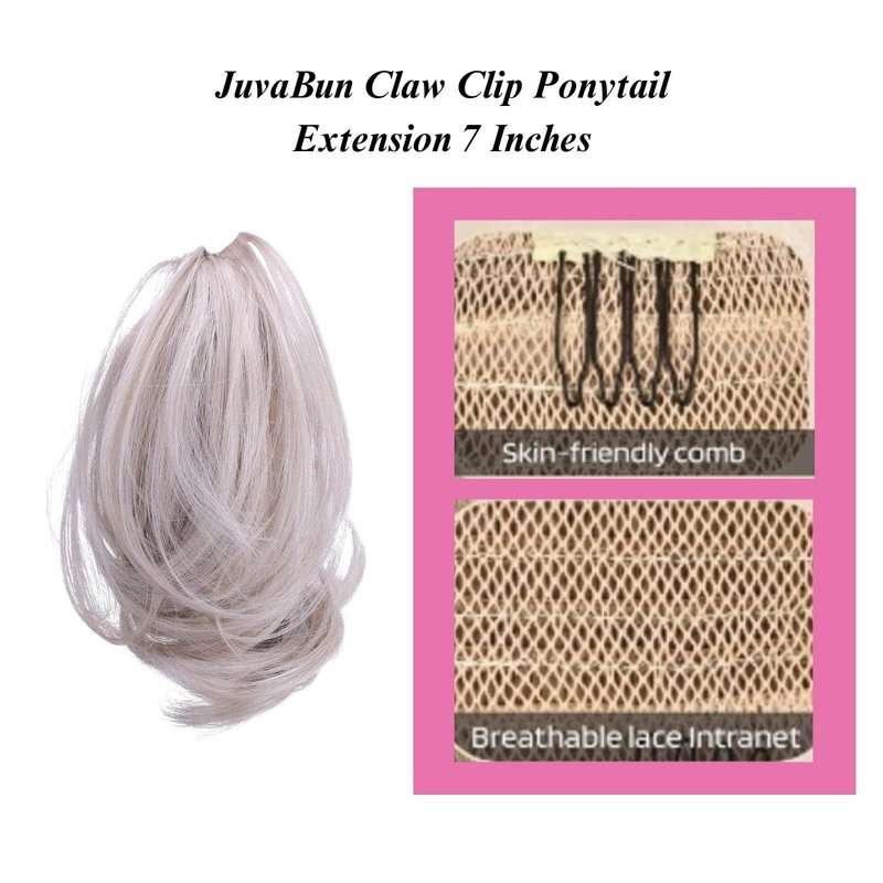 JUVABUN Claw Clip Wavy Ponytail Extension 7" -Platinum Blonde| Hair Extension Clips | Ponytail Extension Human Hair | Wavy Hair Extensions | Washable Realistic And Synthetic |Platinum Blonde