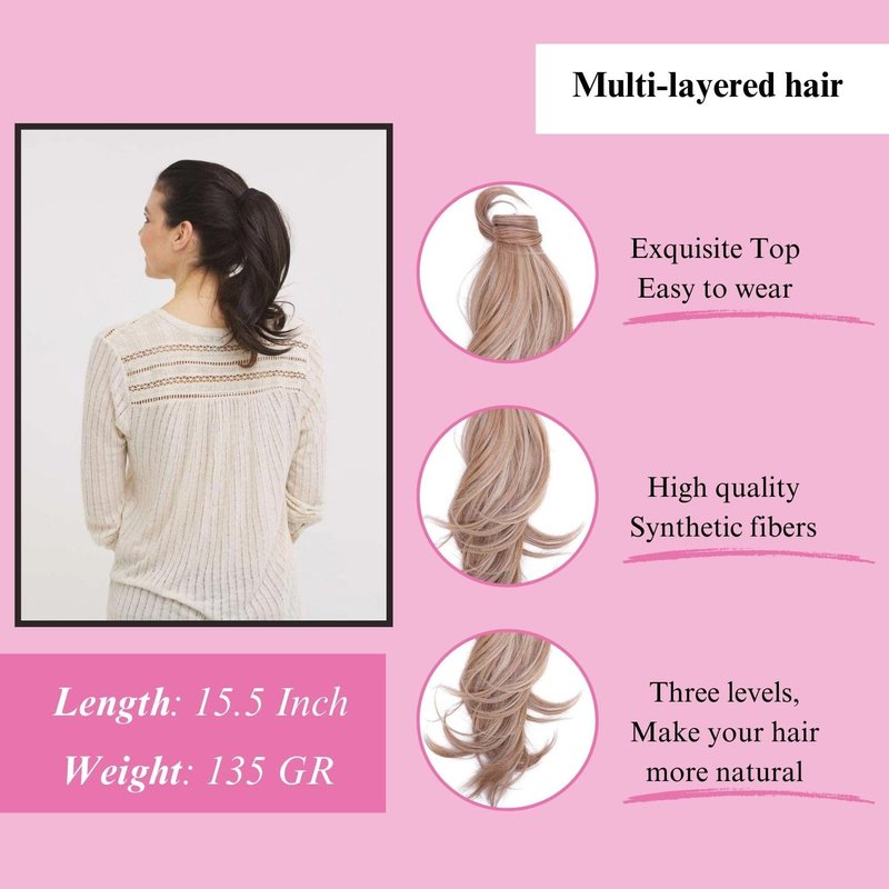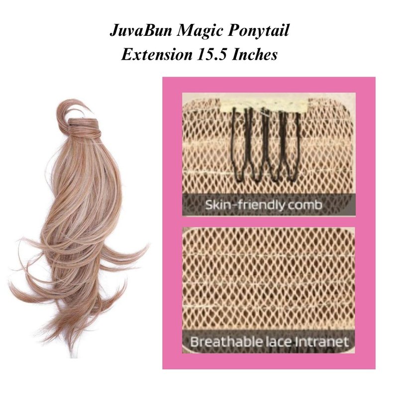 JUVABUN Curly Magic Ponytail Hair Extensions 15.5 '- Medium Blonde|Synthetic Hair Extensions |Washeble And Realistic | Hair Extensions Ponytail | 15.5' -Medium Blonde