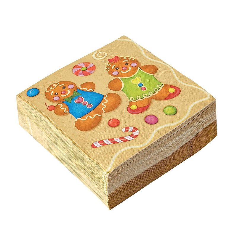 Juvale 100 Pack Gingerbread Cookie Napkins, Christmas Holiday Party Supplies (6.5 x 6.5 In, 2-Ply)