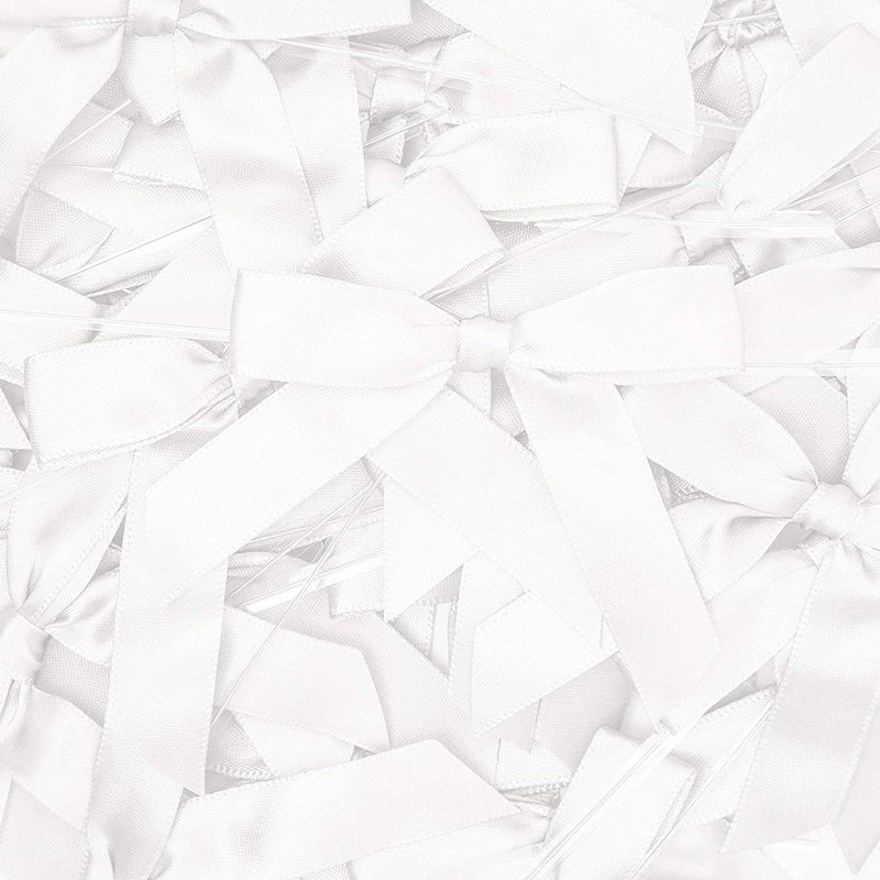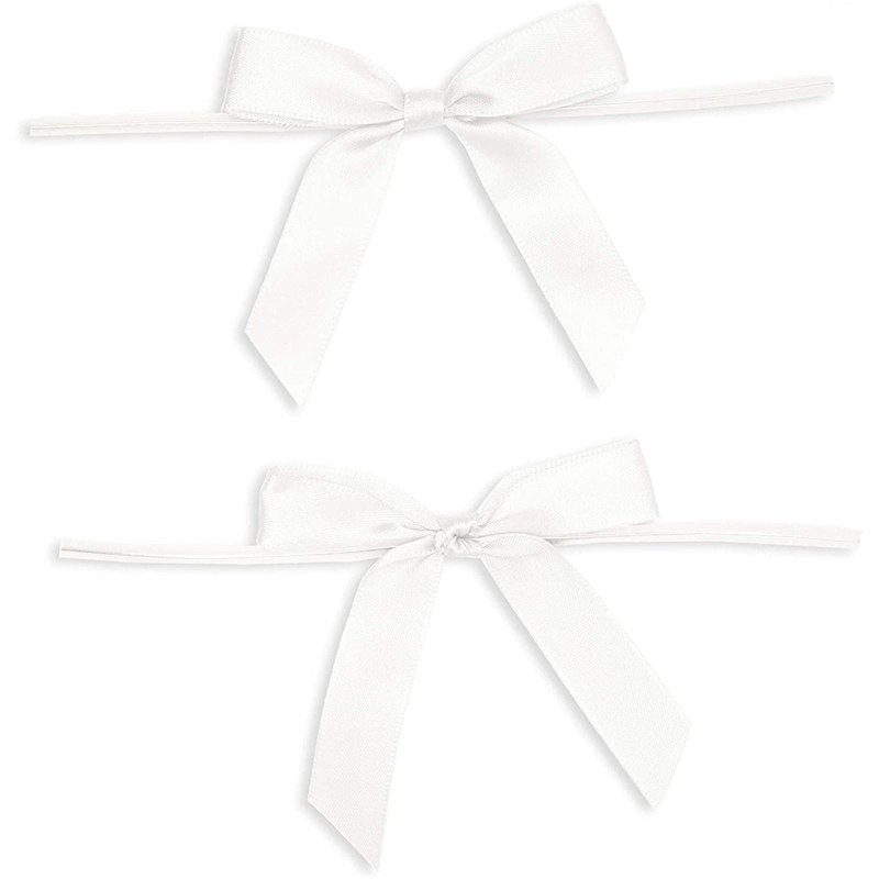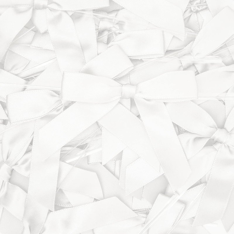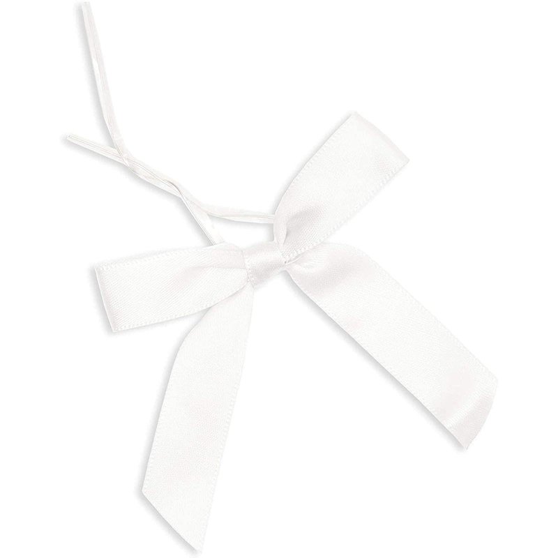 Juvale 100-Pack Twist Tie Bows for Crafts, Pre-Tied Satin Ribbon for Gift Wrap Bags, Party Favors, Baked Goods, Cookies, Mini Bowties for Hair Decorations (2.5x3 in, White)