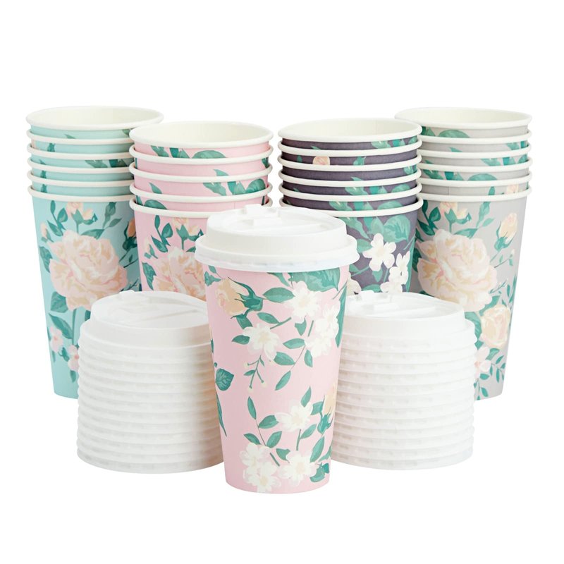 - To Go Coffee Cups With Lids: Our cute and colorful floral coffee cups are great for serving hot and cold drinks like coffee, tea, hot cocoa, and even soft drinks