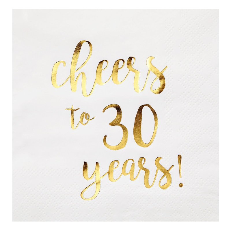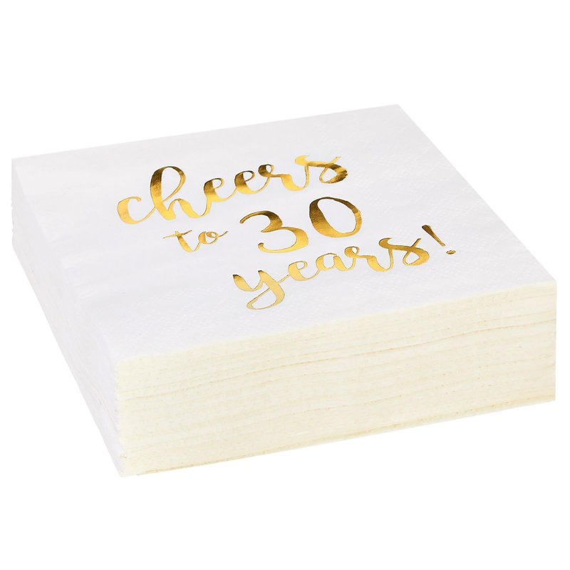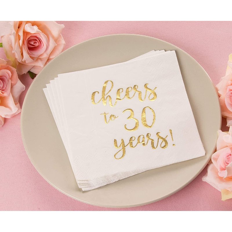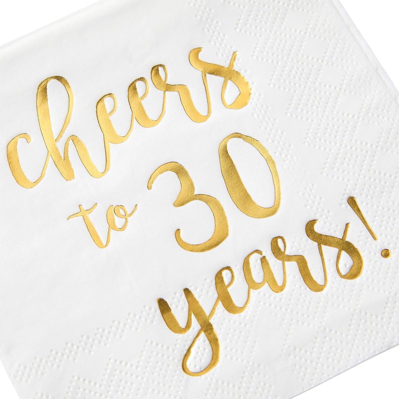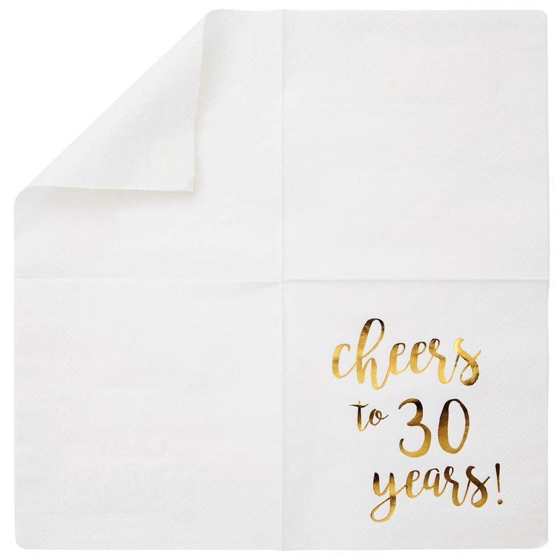 - Cheers to 30 Years Napkins: Complete your birthday or anniversary-themed party decorations with our set of disposable cocktail napkins
