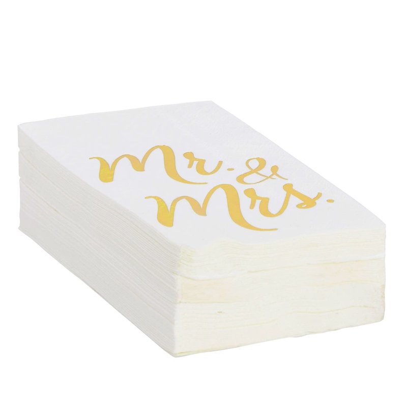 - Elegant Set of 50: This charming pack includes 50 gold foil Mr & Mrs napkins in a timeless white hue that will effortlessly match a variety of wedding color palettes for a cohesive look