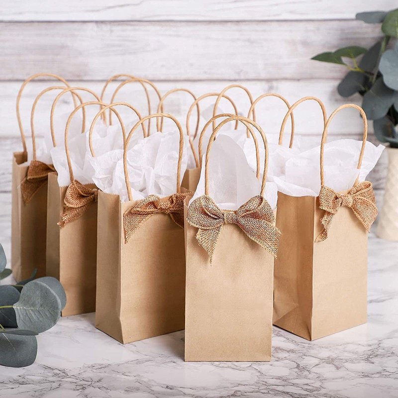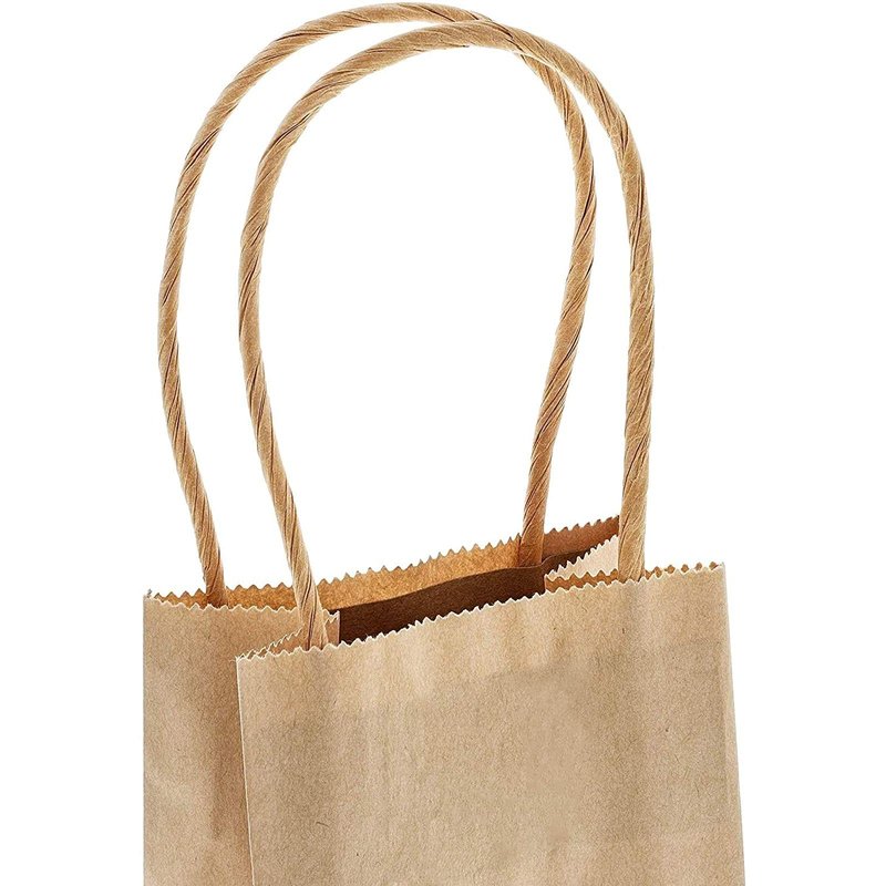 - What's Included: A bulk set of (50) kraft brown small paper bags with handles measuring 3.5x2.4x7 inches each. These sturdy gift bags provide an ample supply for retail shopping, party planning and stocking up for multiple events, ensuring both convenience and cost-effectiveness