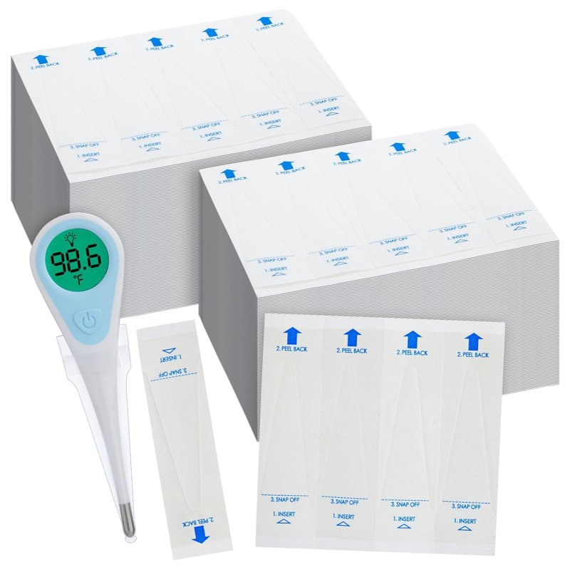 These thermometer probe covers serve as protective shields for popular digital oral, rectal and armpit temperature reading devices. Helping to keep your thermometer in good condition, they are ideal choice for clinical or at-home use. Disposal is simple; once you're done taking a temperature with these digital thermometer covers applied, simply dispose of the cover to keep your thermometer in pristine condition. Included in this bulk pack is (500) disposable thermometer sleeves; great as rectal thermometer covers, probe covers for an oral thermometer or to be used as a sheath sleeve for armpit temperature readings with your digital thermometer. Juvale is a trademark or registered trademark of Juvo Plus, Inc. All other marks shown are owned by their respective owners.