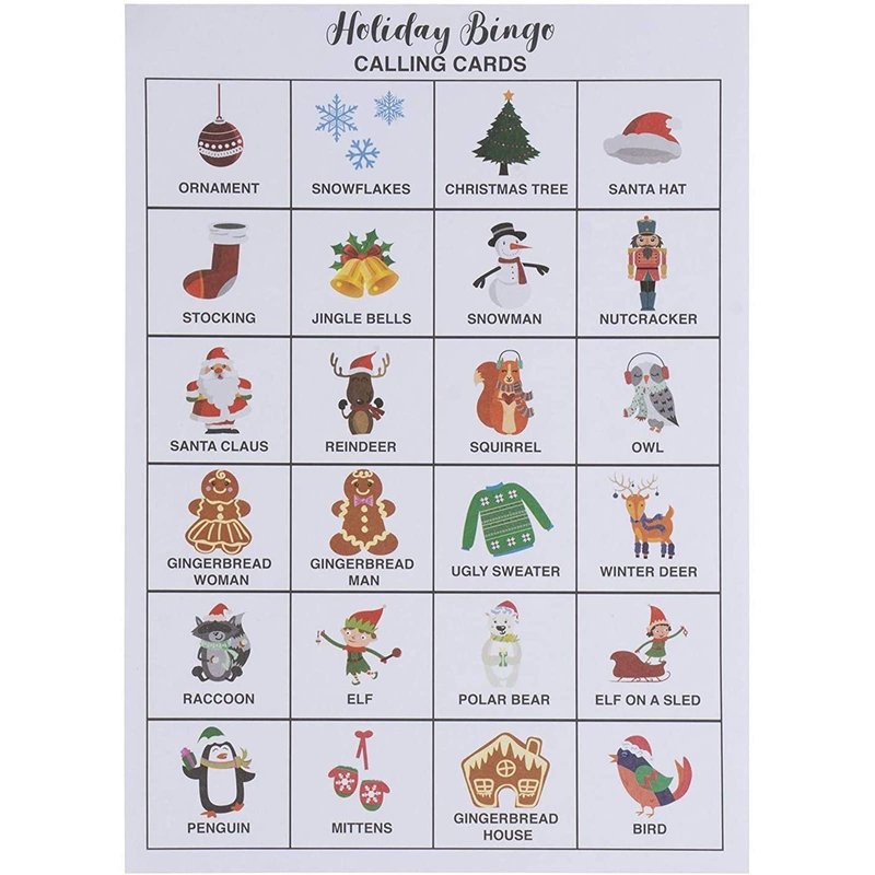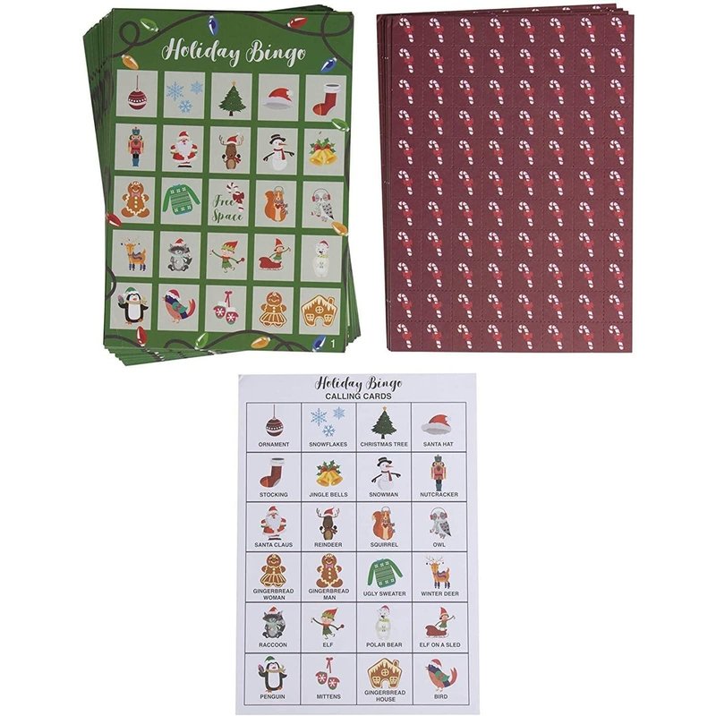 - What's Included: In this package of Christmas bingo game, includes 36 Christmas bingo cards, 1 bingo calling card, 1 instruction sheet, and 9 sheets of perforated candy cane chips (792 chips in total)