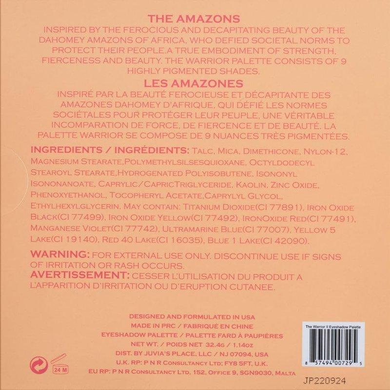 Juvia's Place Warrior 2 Eyeshadow Palette - Professional Eye Makeup, Pigmented Eyeshadow Palette, Makeup Palette for Eye Color & Shine, Pressed Eyeshadow Cosmetics