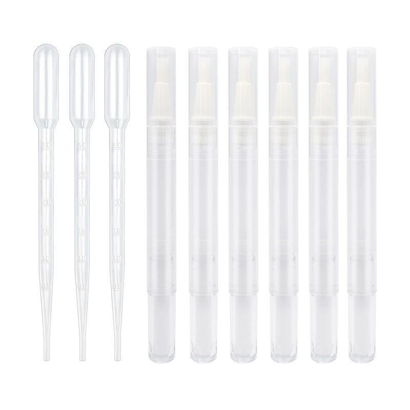 - Packaging: 6pcs empty twist pens with 3pcs transfer pipettes. Note: Please ensure to cover the pen cap after use for hygienic storage! NOT reusable!