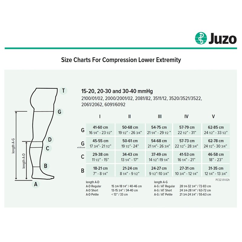 Juzo Soft 2001 pantyhose are made from extremely soft and elastic fibers. Available with a closed or open toe, in regular, short and petite lengths (measure from floor to crease of buttocks). Juzo FiberSoft technology wraps every elastic fiber with soft protective threads, which provide greater ease of application, increased durability, and the ultimate in softness and wearing comfort. Easy-care machine wash and dry. This stocking provides 20-30mmHg of gradient compression which improves blood flow, prevents edema (swelling), and reduces the discomfort caused by moderate to severe varicosities. It helps in the recovery from sclerotherapy and other post-surgical procedures. And it helps prevent the recurrence of venous ulcerations. Woven from 73% nylon and 27% spandex in the USA. Regular, short and petite lengths. Open toe. Adjustable waistband