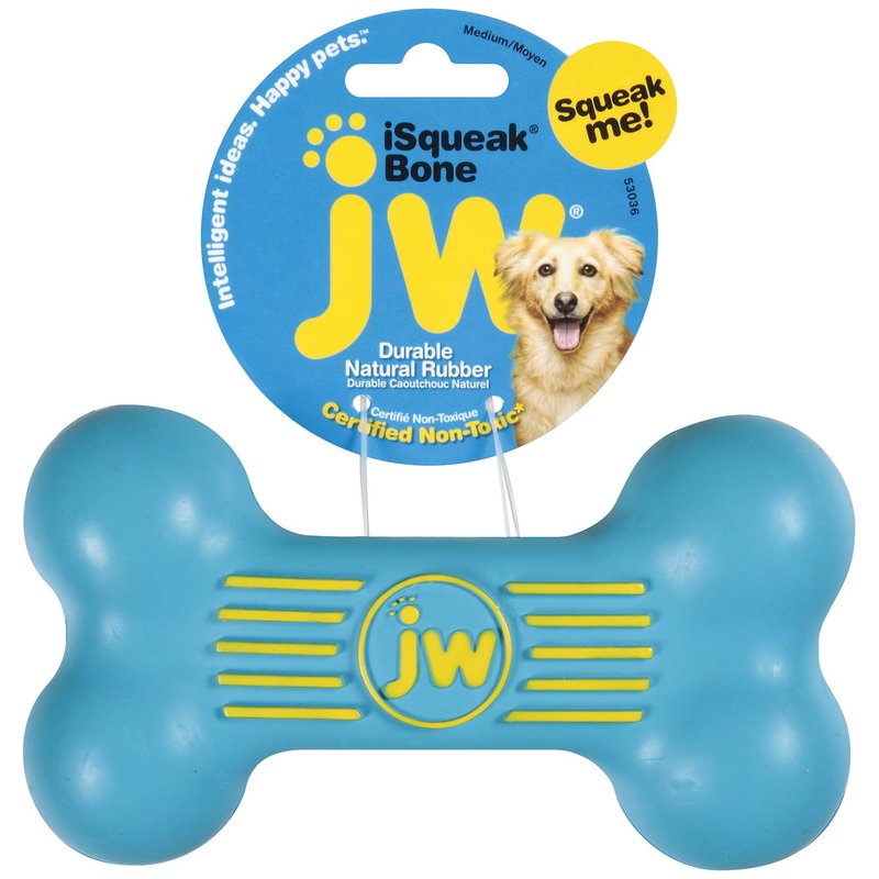 JW iSqueak Bone Durable Natural Rubber Dog Toy (Assorted Colors)