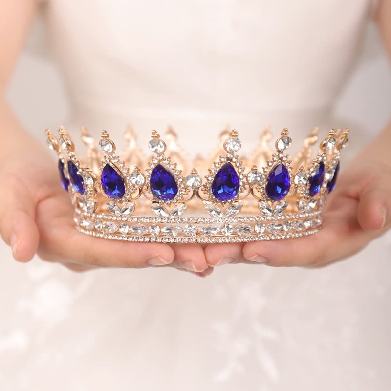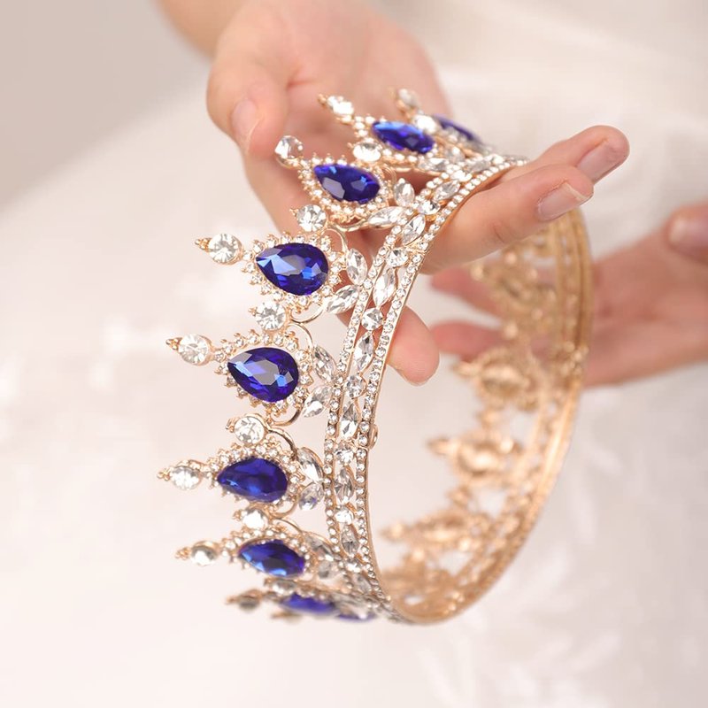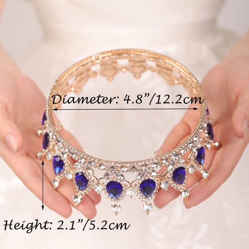 JWICOS Crystal Tiara for Women Rhinestone Bridal Wedding Full Round Tiara Hair Accessories for Girls Princess Tiara Crown Headband for Birthday Party Halloween Costume Prom (Royal Blue)