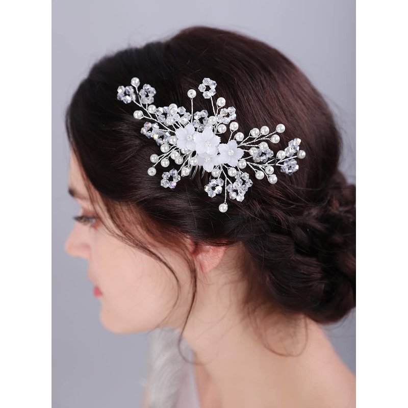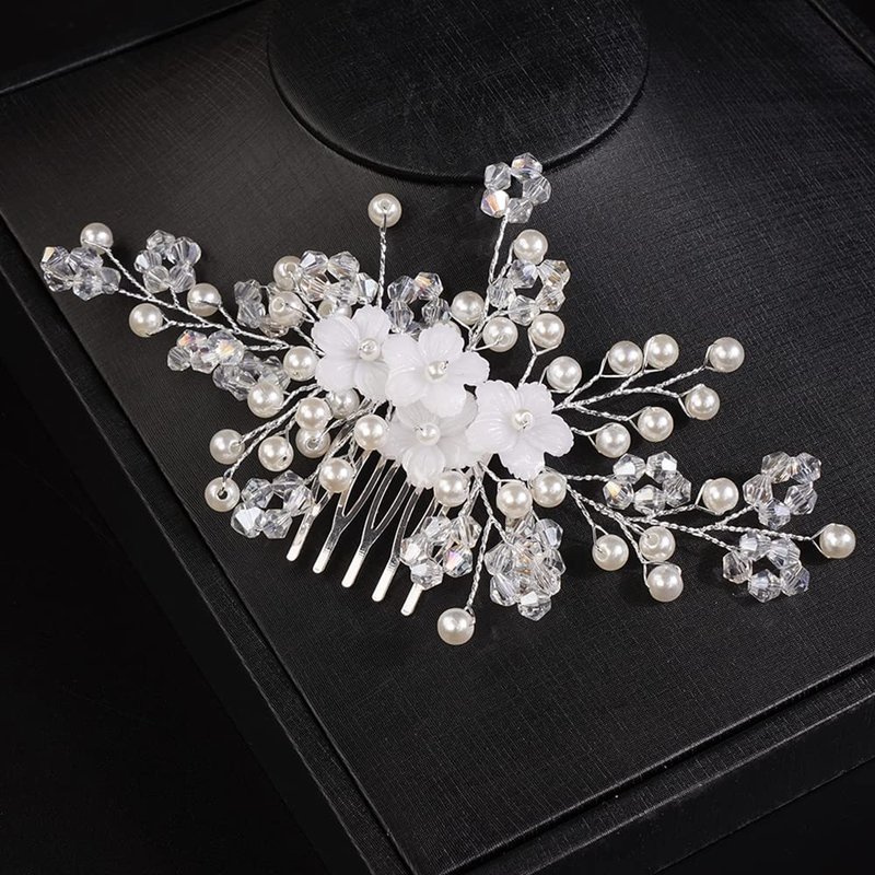 - ♥Material: Wedding hair accessories are made of alloy,beads,imitation pearl flower and comb,well crafted,stays securely in your hair.