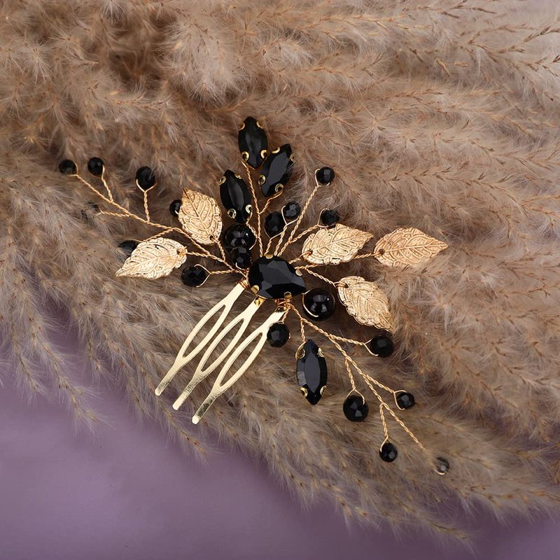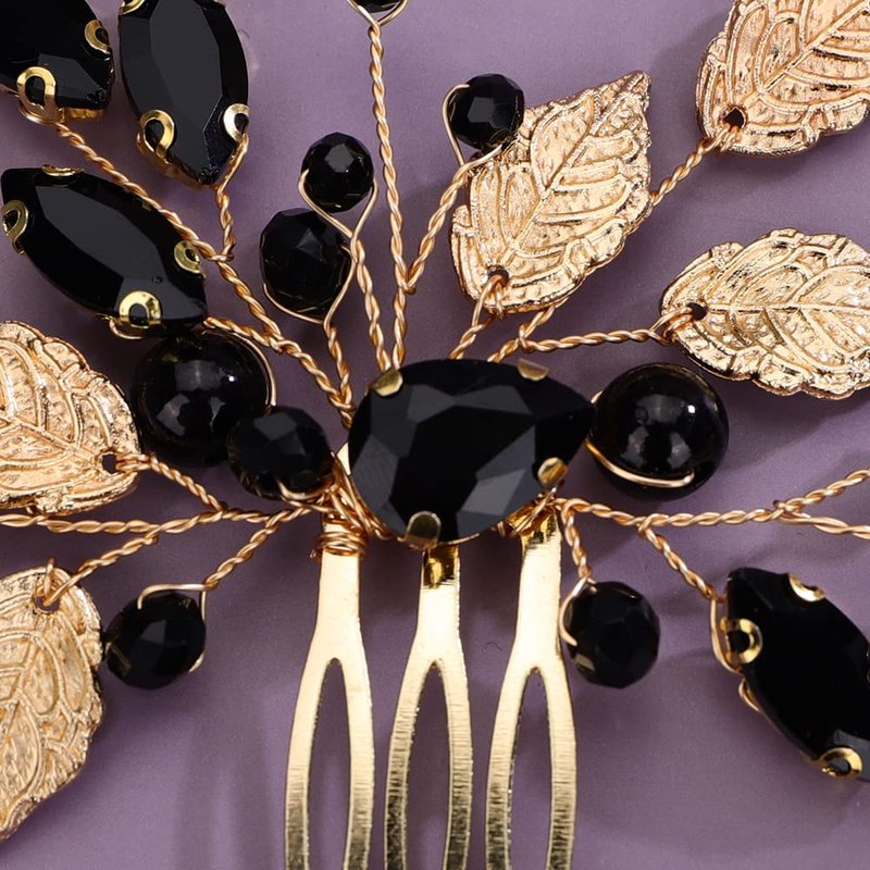JWICOS Leaves Crystal Bride Wedding Hair Comb Hair Accessories with Beaded Bridal Hair Accessories for Brides and Bridesmaids (Gold Black)