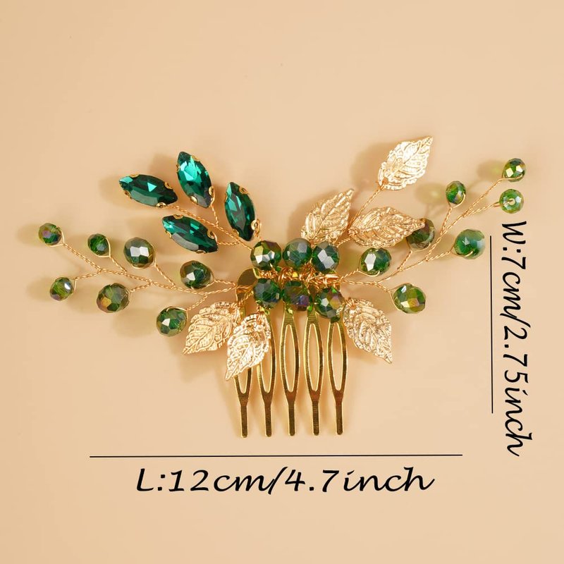 JWICOS Leaves Crystal Bride Wedding Hair Comb Hair Accessories with Beaded Bridal Hair Accessories for Brides and Bridesmaids (Gold Green)