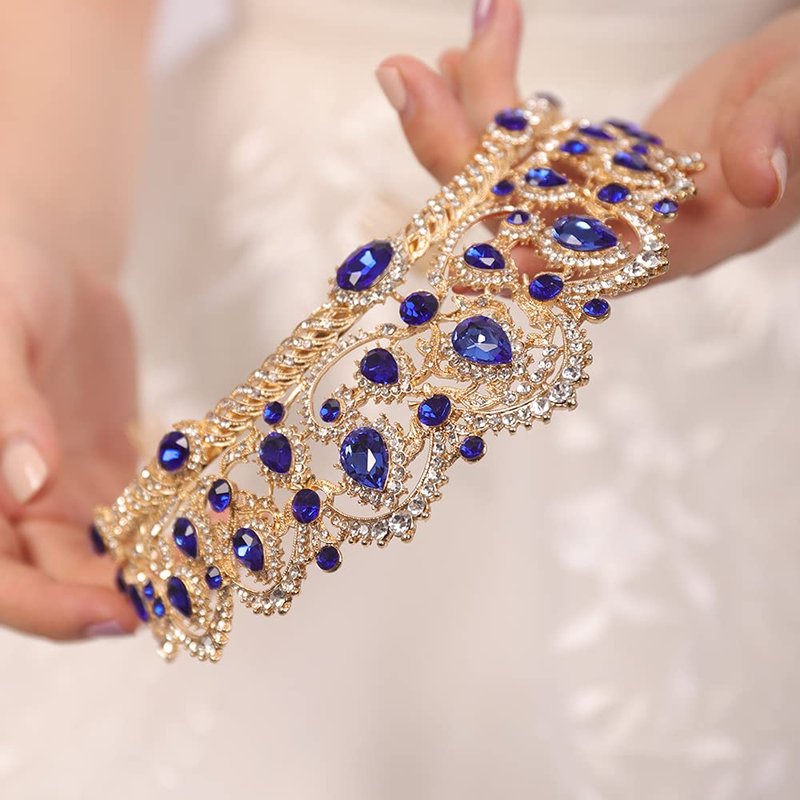 JWICOS Navy Blue Crystal Rhinestones Baroque Queen Crowns and Tiaras with Comb Wedding Bridal Headband Hair Accessories for Bachelor Party Wedding Prom
