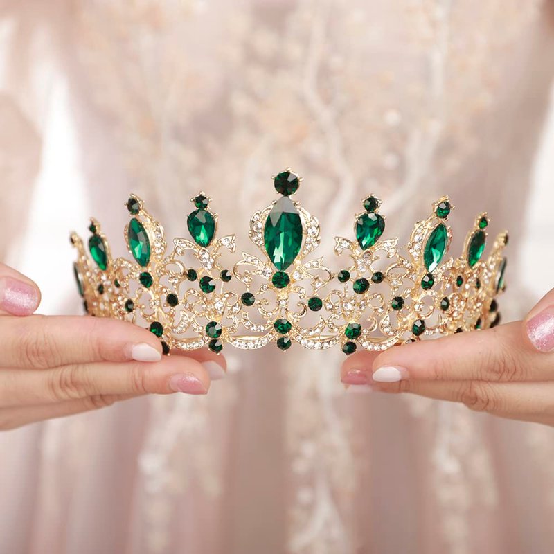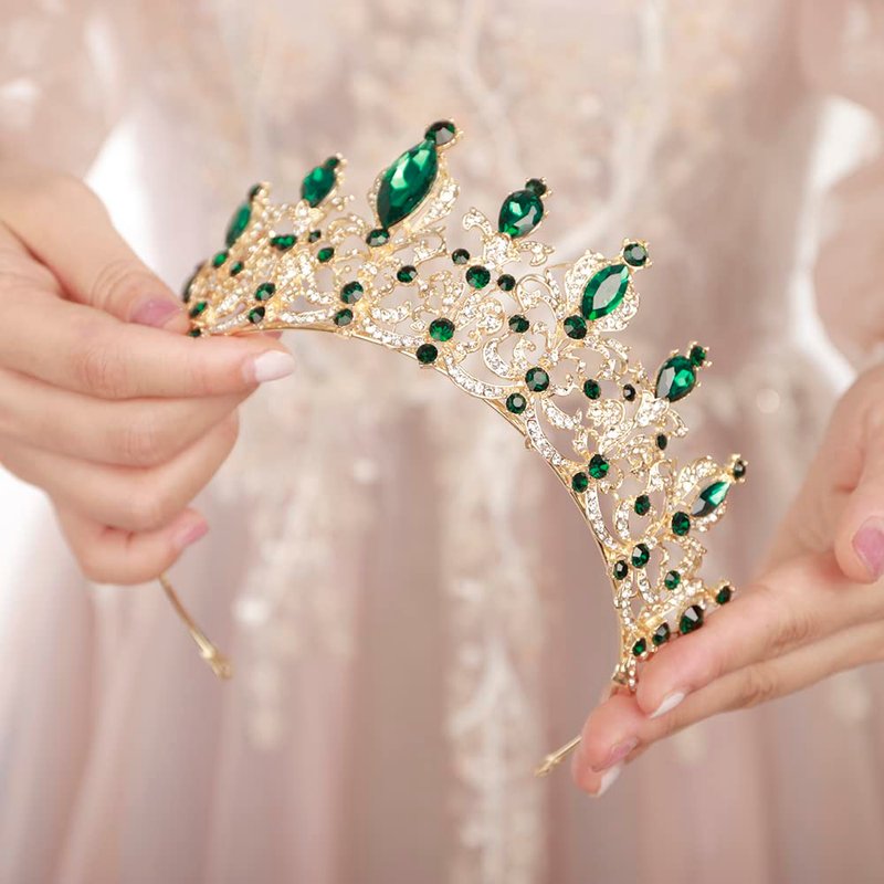JWICOS Tiara and Crown for Women and Girls Crystal Headbands Tiara Queen Crown Hair Accessories for Birthday Bride Bridesmaid Wedding Prom Halloween Costume Christmas (Green)
