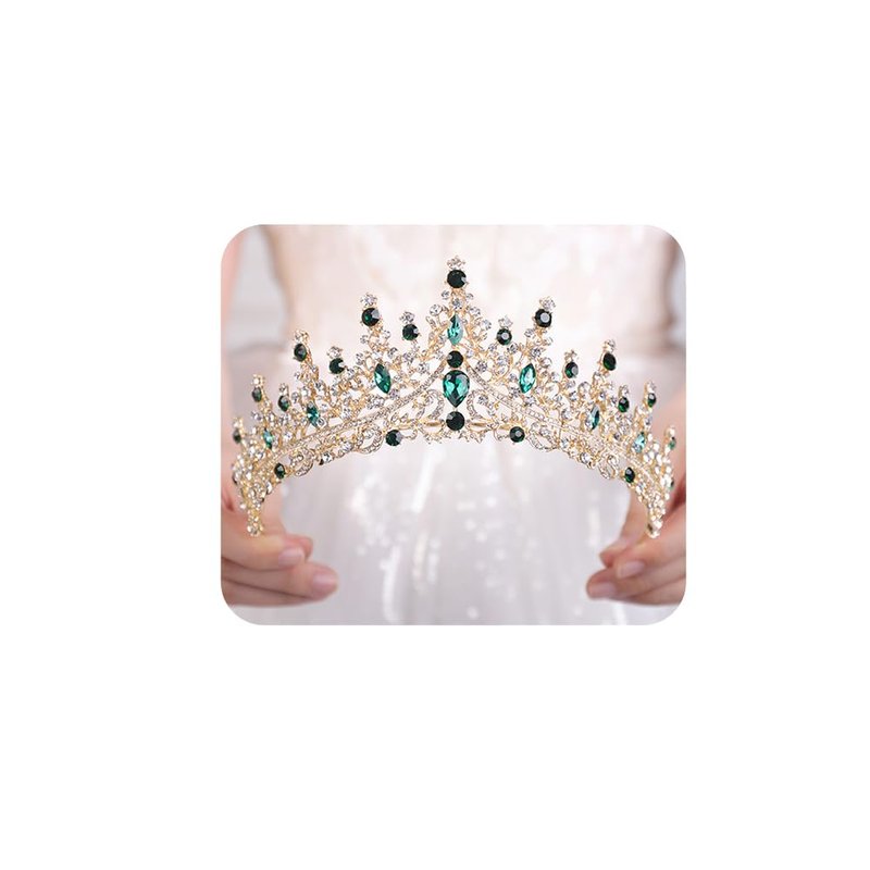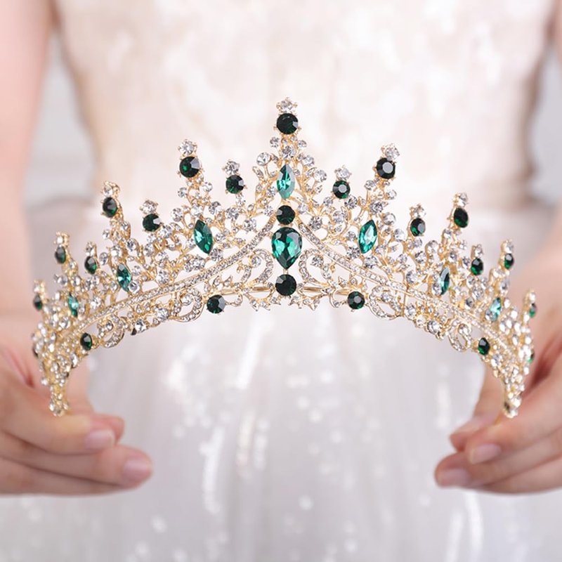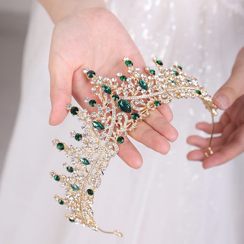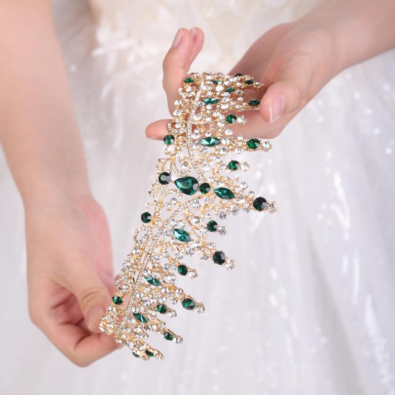 JWICOS Tiaras and Crowns for Women Crystal Wedding Tiara Crown Headband Princess Tiara for Bride Quinceanera Crown for Birthday Prom Pageant Halloween Costume Cosplay (Green)