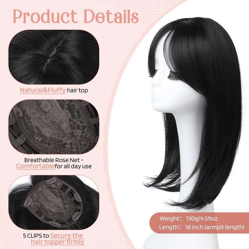 - STAY AWAY FROM THINNING HAIR TOP: Our hair toppers with short layers and slightly curly ends can create a fuller and more voluminous hairstyle based on existing hair, and effectively cover the problems of thinning, gray area hair, high hairline and wide hairline. No longer have to worry about thinning hair volume, let you go out shopping elegantly and confidently.