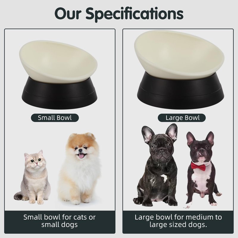 - It can be used in so many types of small cat and dog especially once with flat face such as French bulldog and pug dog. It is divided into two parts. food bowl and the bottom base