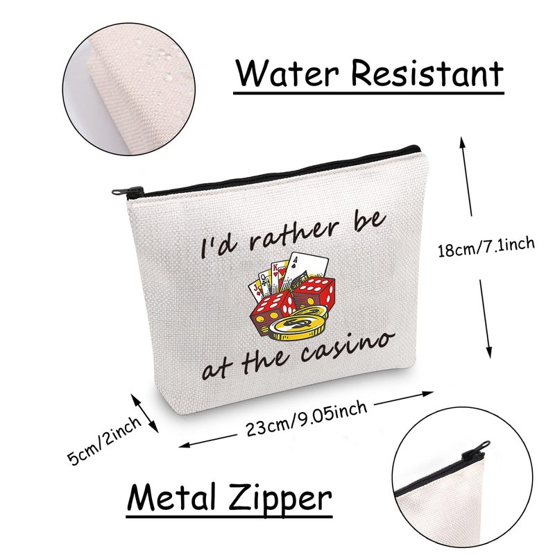 JXGZSO Gambler Gift I'd Rather Be At The Casino Makeup Bag Lucky Dice Pouch Bag Casino Lover Gifts