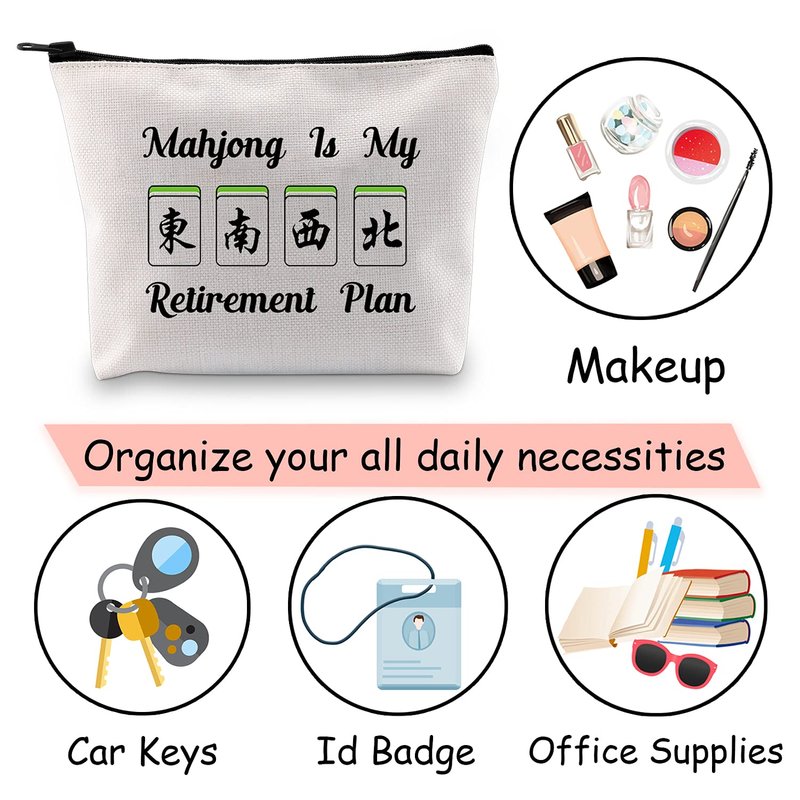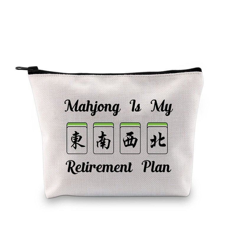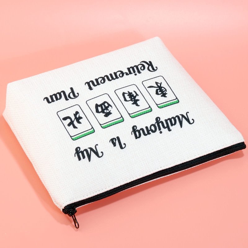 JXGZSO Novelty Mahjong Cosmetic Bag Mahjong Lover Gift Mahjong is My Retirement Plan Board Game Zipper Purse Gift Lucky Mahjong Player