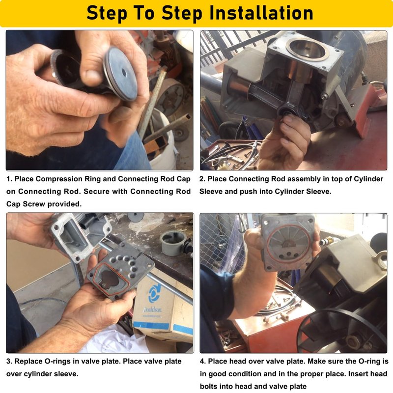 - PACKAGE INCLUDES -- Cylinder Sleeve, Compression Ring, Piston Rod Cap Screw, Valve Plate to Cylinder Sleeve O-Ring, Cylinder head O-Ring.