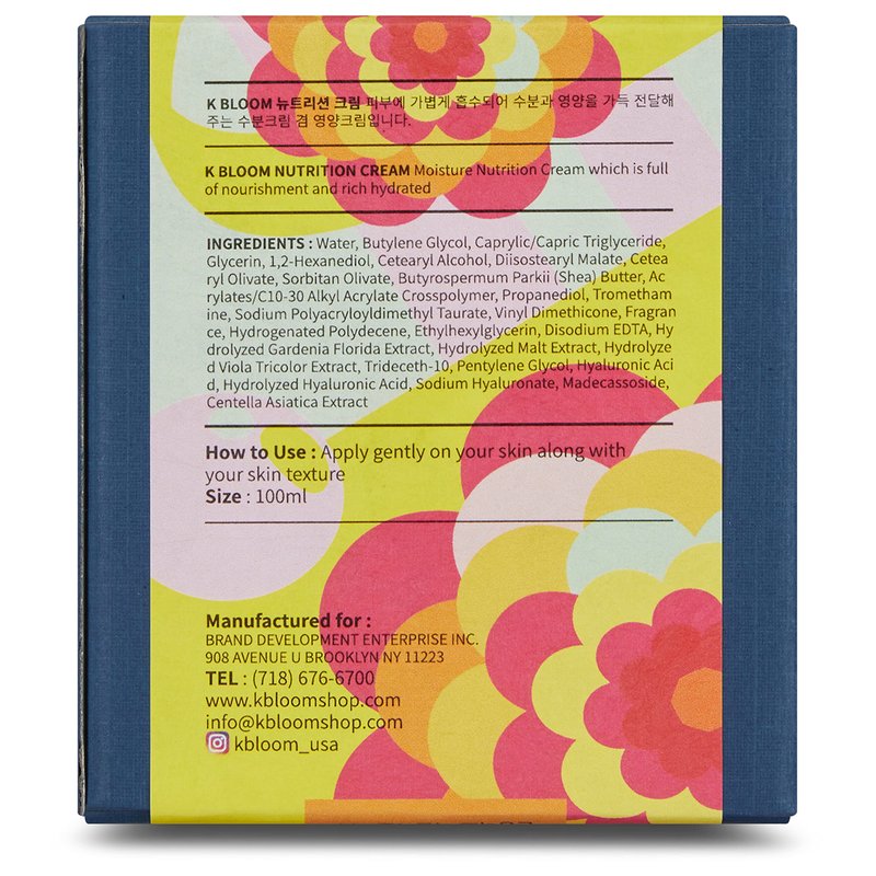 K BLOOM Nutrition Cream/Korean Skin Care Nutrition Face Cream/Facial Moisturizer for Dry and Combination Skin Types/Healthy & Natural Ingredients Deeply Moisturize Skin - 100ml 3.4 Fl Oz