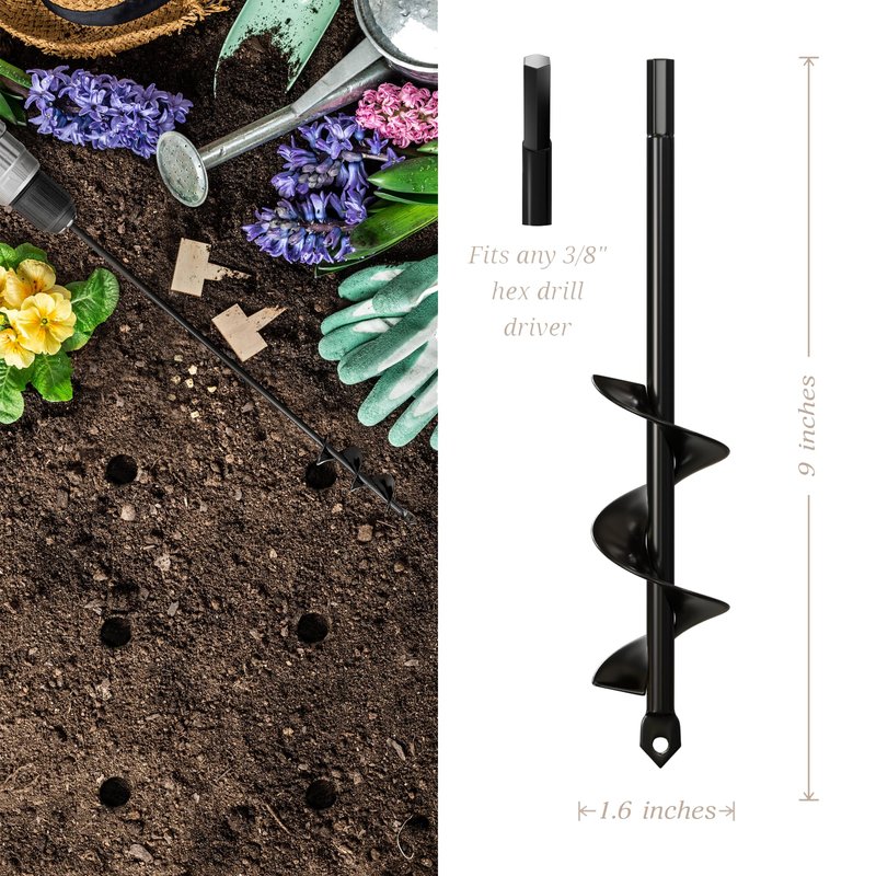 - TOSS YOUR TROWEL: You won’t need your gardening shovel with these auger drill bits. 16 inches long, made of high quality and heavy-duty steel, each garden drill planter is designed to do all the work of digging holes for you, without you needing to put your back into it. Works on loose soil, hard ground, sand, clay, and even ice.