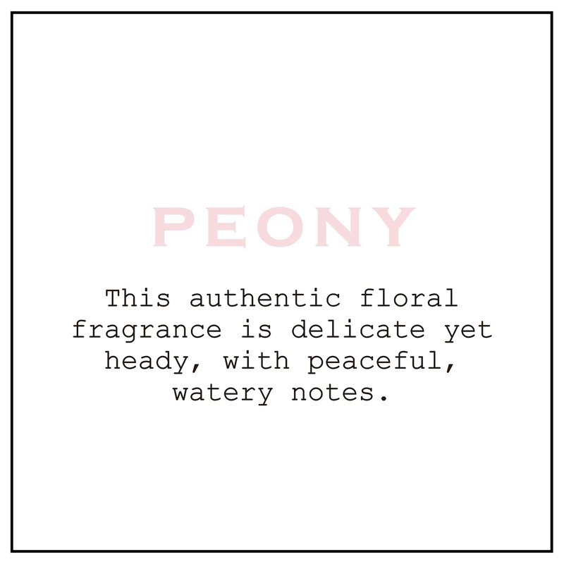 - A True Peony Scented Lotion: This authentic floral fragrance is delicate, yet heady with peaceful, watery notes.