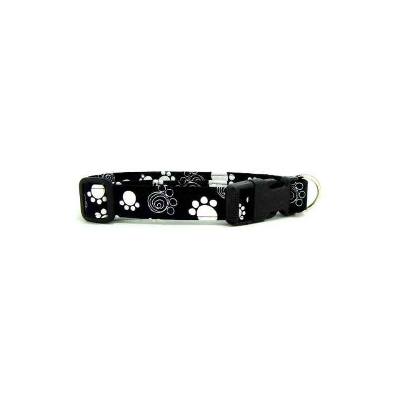 K9 Bytes Black & White Swirl Paws Soft Adjustable Dog Collar with Quick Release Buckle Small