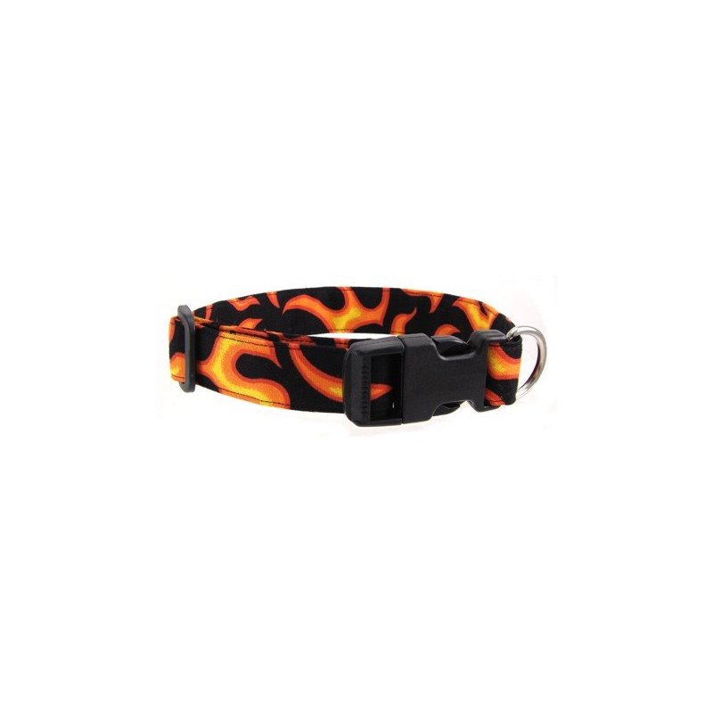 K9 Bytes Orange Flames Soft Adjustable Dog Collar with Quick Release Buckle Medium
