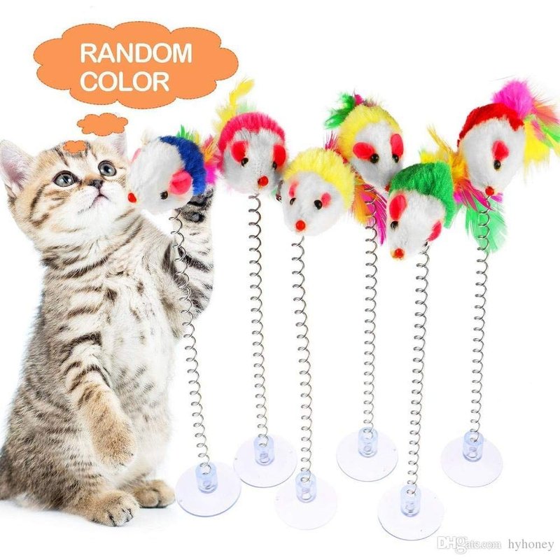 Material: sucker + feather mouse + spring, fancy toys for cat.