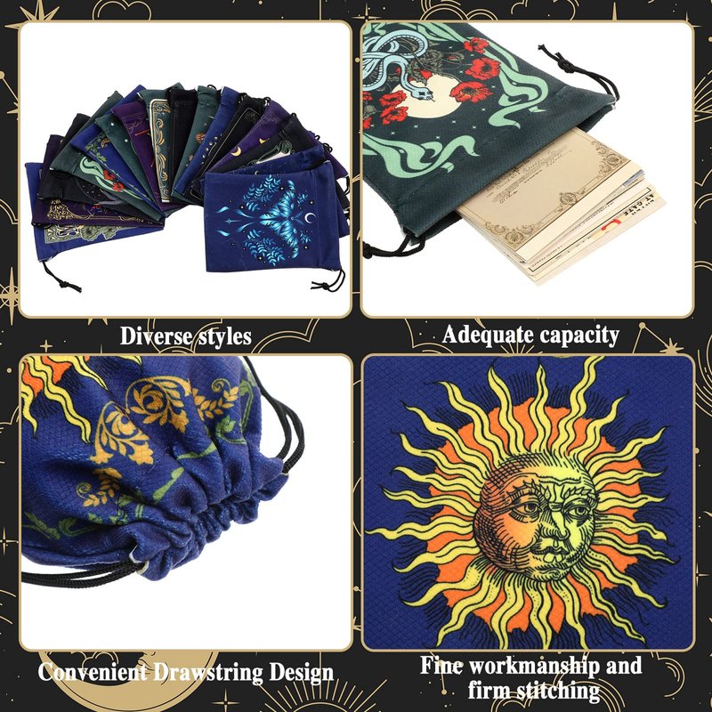 - Unique Design: these tarot card velvet drawstring bags are designed with 16 different patterns, including moon, sun, flowers, etc., mysterious and fantastic, delicate and eye catching, easy to attract attention of most people