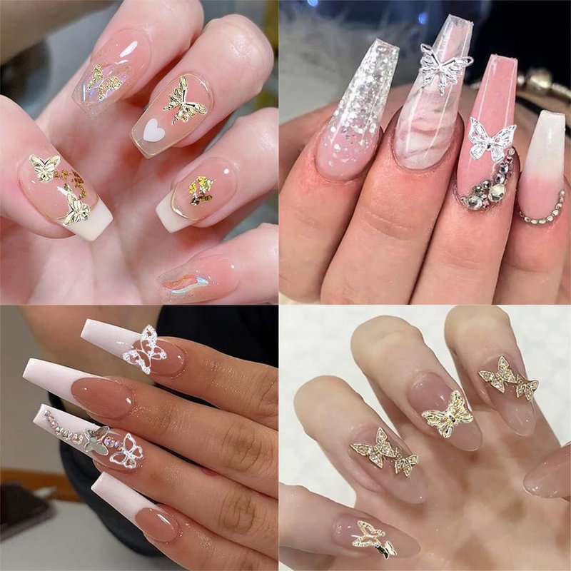 - 【Silver and Gold Butterfly Nail Charms】The nail Butterfly charms are designed with alloy butterfly shapes, you can just stick it on nails, Luxury and shiny all the time, make your nails look more elegant and charming.