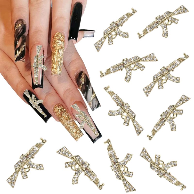 - 【Package Includes】You will receive 10pcs alloy gun shaped nail art charms, the size of per gun nail charm is about 27x11mm / 1.06x0.43inches.