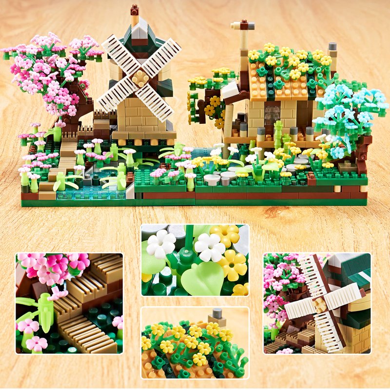 - Build Your Own Windmill,Flower Display.This windmill and flower building set assemble using 600 pcs micro bricks. Measures 85mm high,90mm wide and 170mm length.Two different shapes that can be combined or separated. You can either be displayed independently, or plugged together